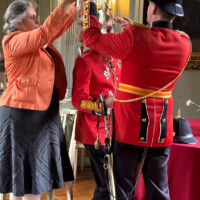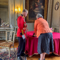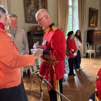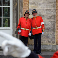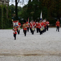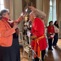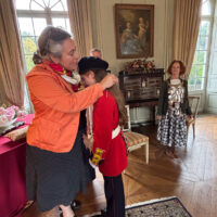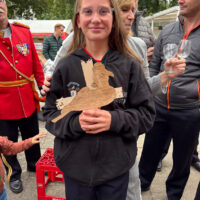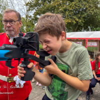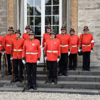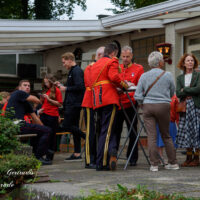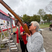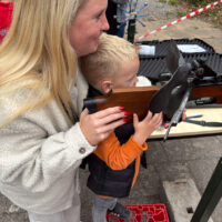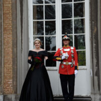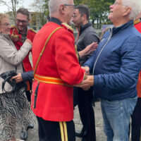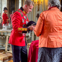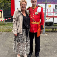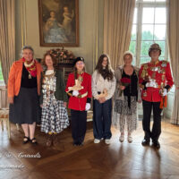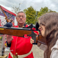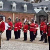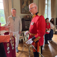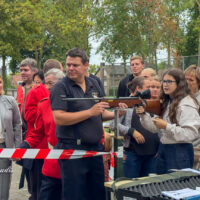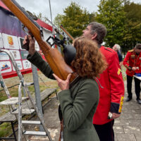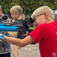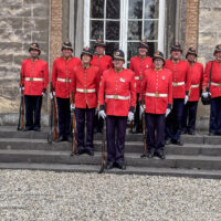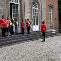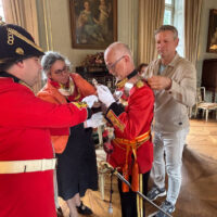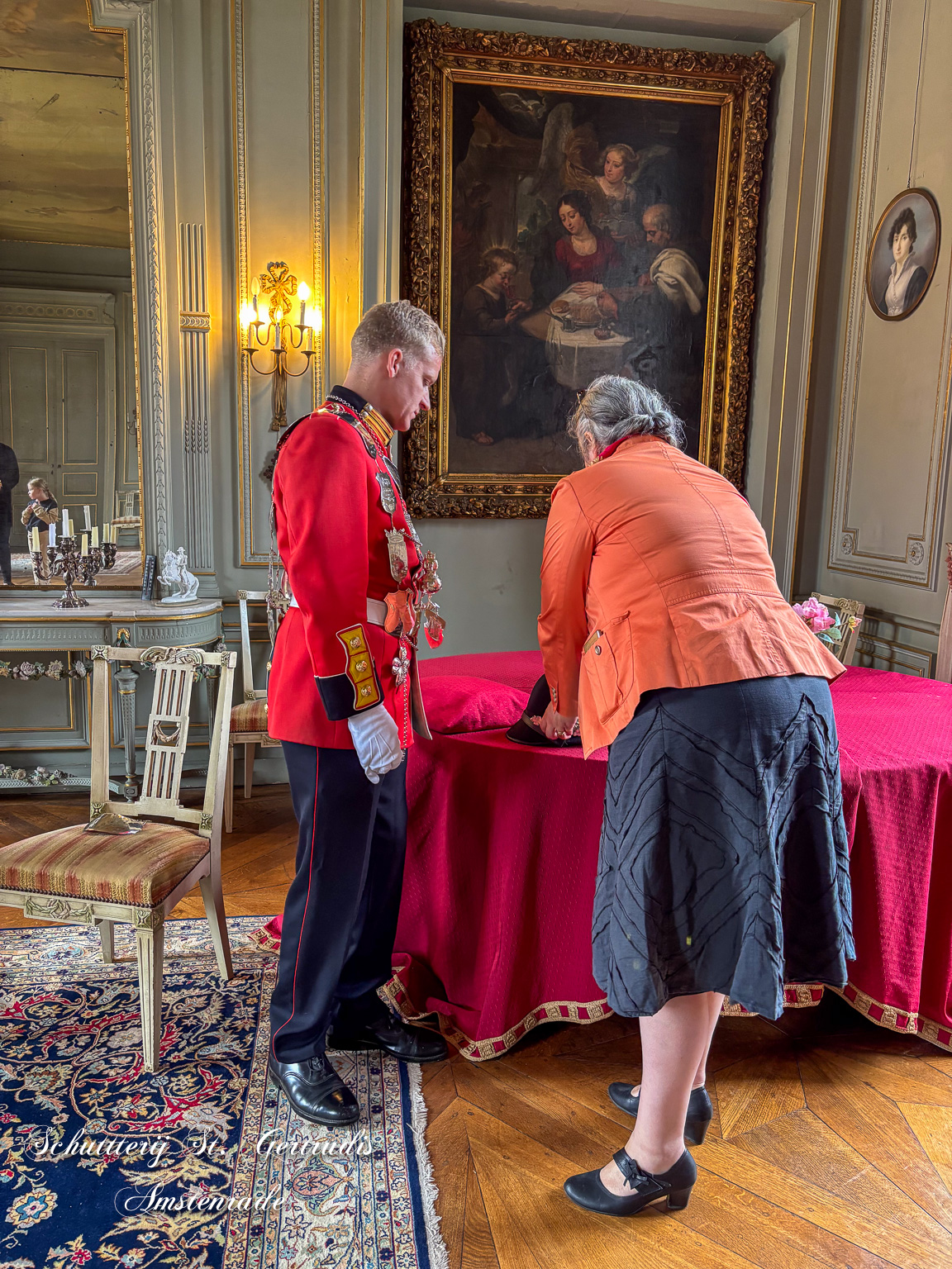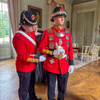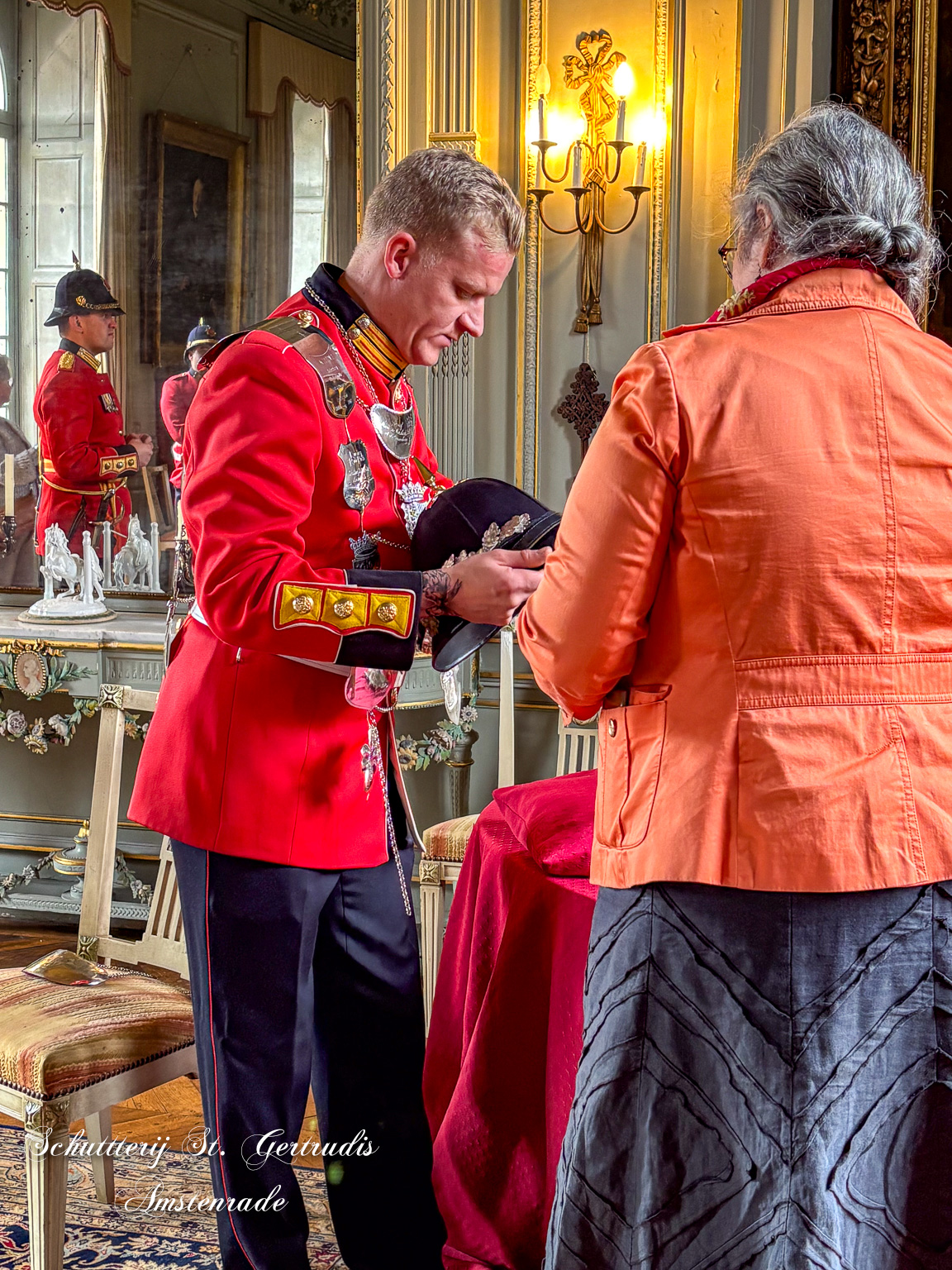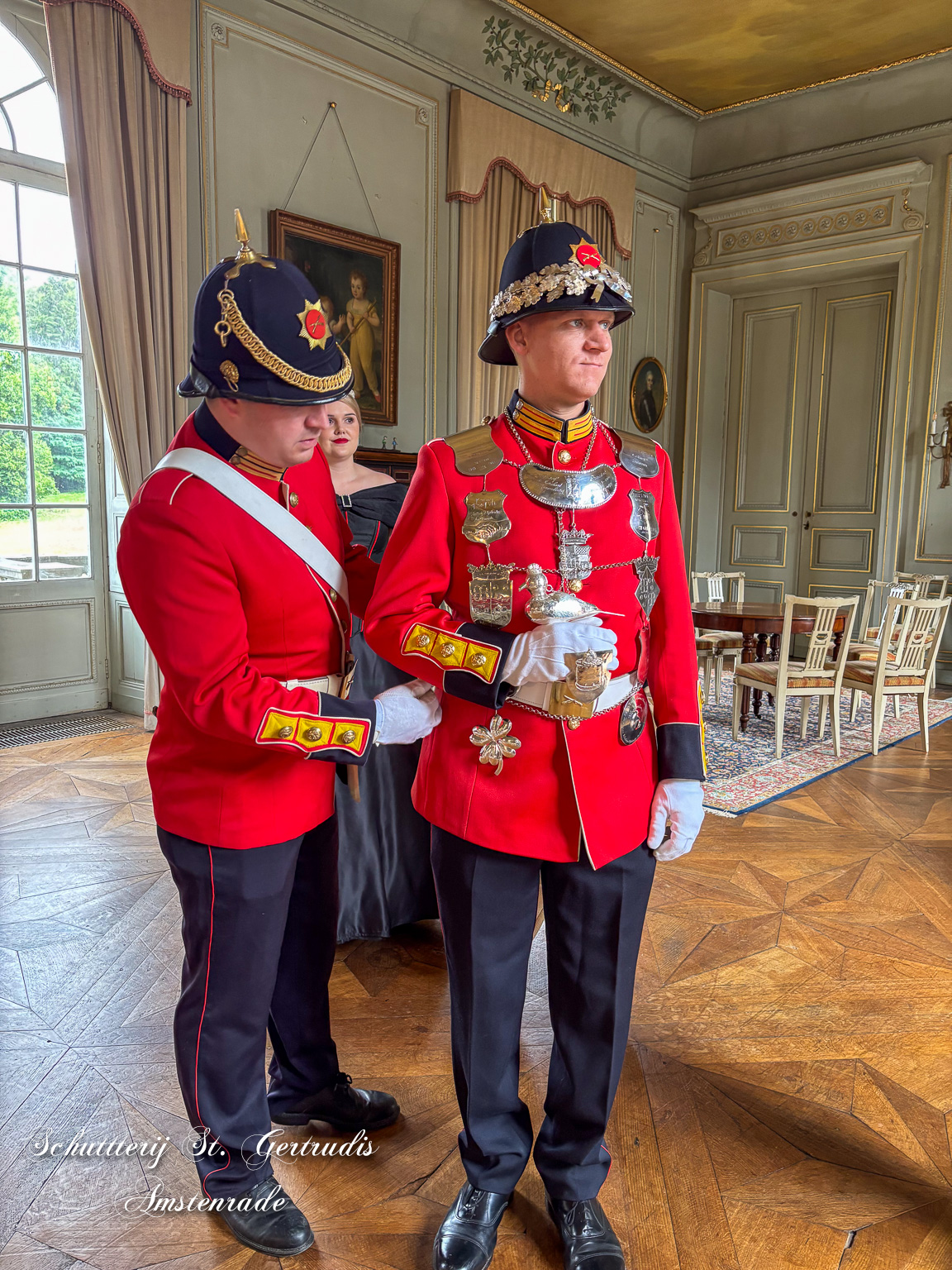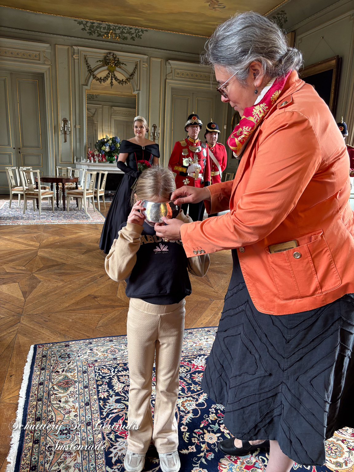 Dit jaar werd het programma iets vervroegd, waardoor er extra ruimte was voor mooie momenten, zoals de groepsfoto’s bij het kasteel voordat het koningszilver werd afgelegd. Vervolgens ging het hele gezelschap richting het Sjöttehoes, waar het hoogtepunt van de dag plaatsvond: het schieten om de koningsvogel.